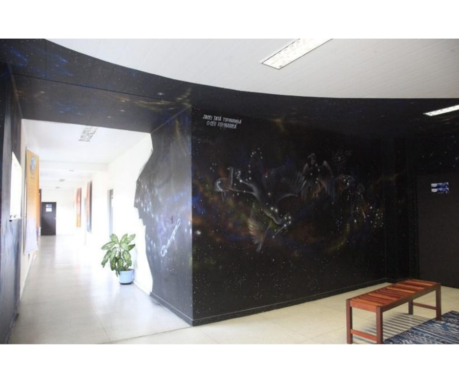 En el vestíbulo, un exuberante mural, también pintado por AndSantos, "Jacei Tatá – El Cielo Tupinambá", presenta las constelaciones Tupinambá registradas por Claude D'Aberville a principios del siglo XVII. En el balcón, plantas de la región amazónica conforman el ambiente, que se extiende hasta una cómoda y espaciosa zona común para estudiantes, con sillones, mesas, sillas y enchufes para computadoras portátiles. Todo este ambiente, financiado con fondos de una enmienda parlamentaria, se completó en junio de 2024 para albergar la 76.ª Reunión de la Sociedad Brasileña para el Avance de la Ciencia.